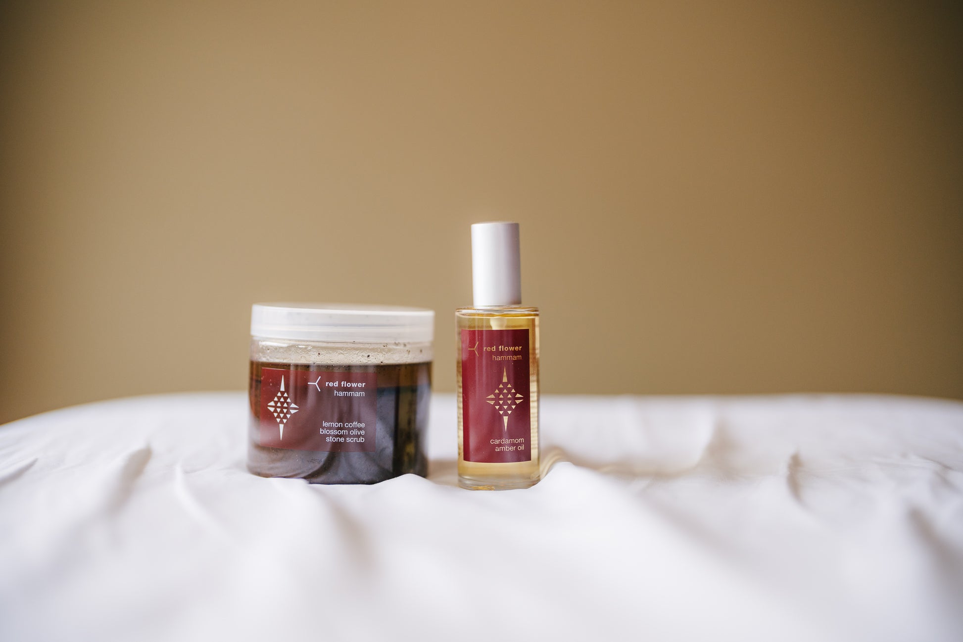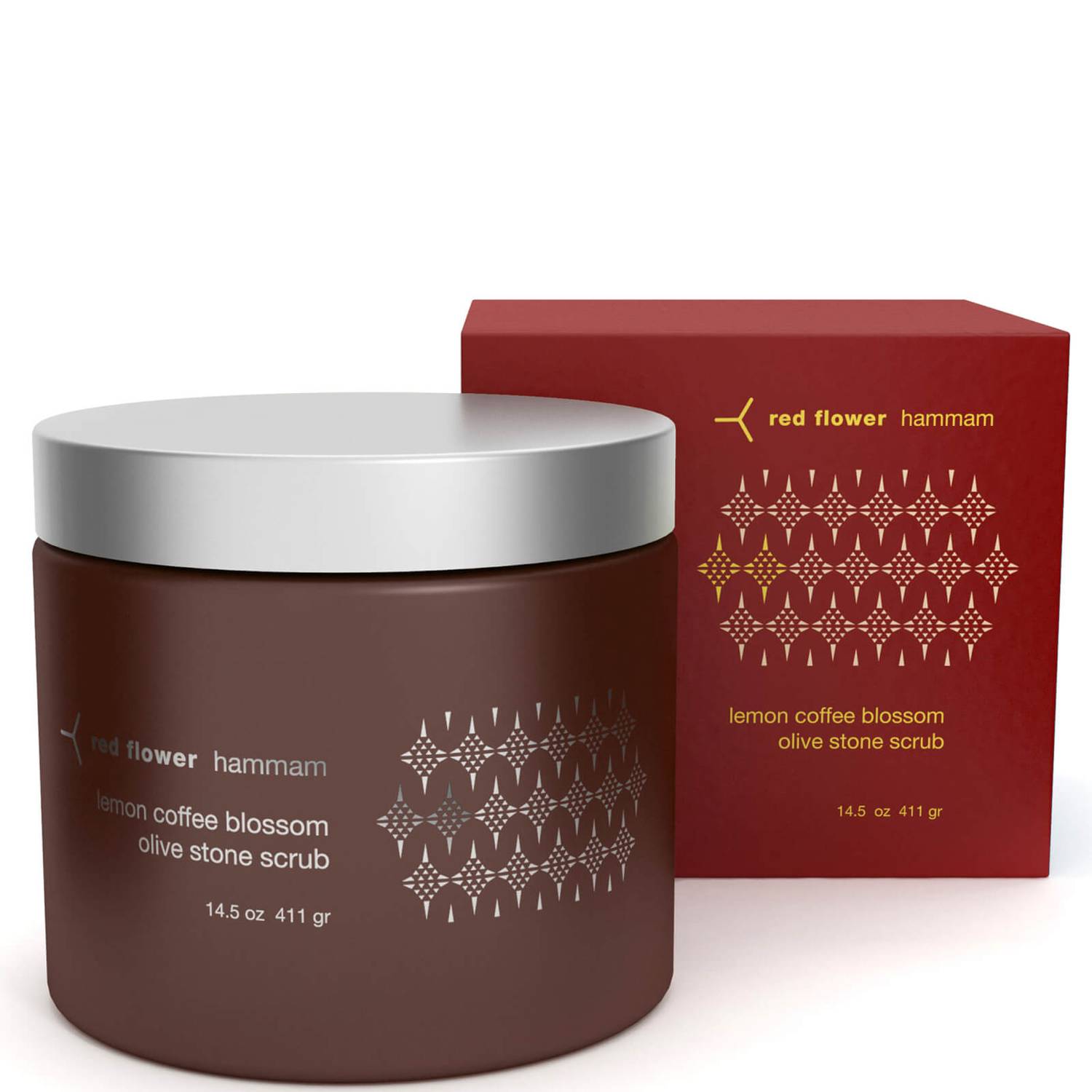 red flower Hammam Lemon Coffee Blossom Olive Stone Scrub