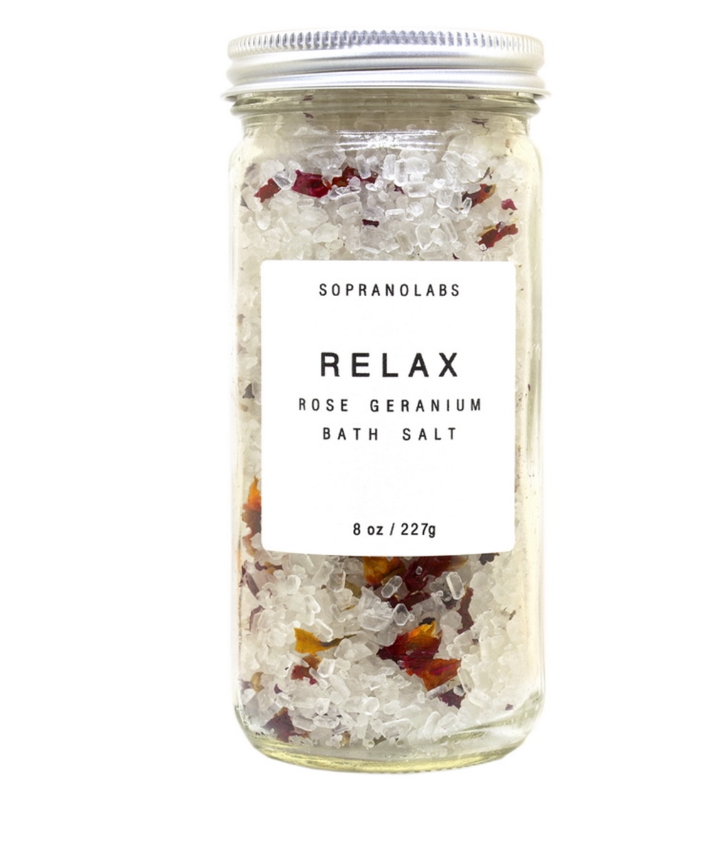 Relax Bath Salt is a luxurious bath soak made with four salt varieties and rose petals. The truly soothing and relaxing blend of floral Rose Geranium and Palmarosa Essential Oils relaxes mind and body. Epsom salt aids in calming muscles and eliminating toxins. Bathing in Dead Sea Salts encourages dermal absorption of minerals and stimulates blood circulation. Natural plant essential oils provide a safe, subtle fragrance without chemical enhancers.