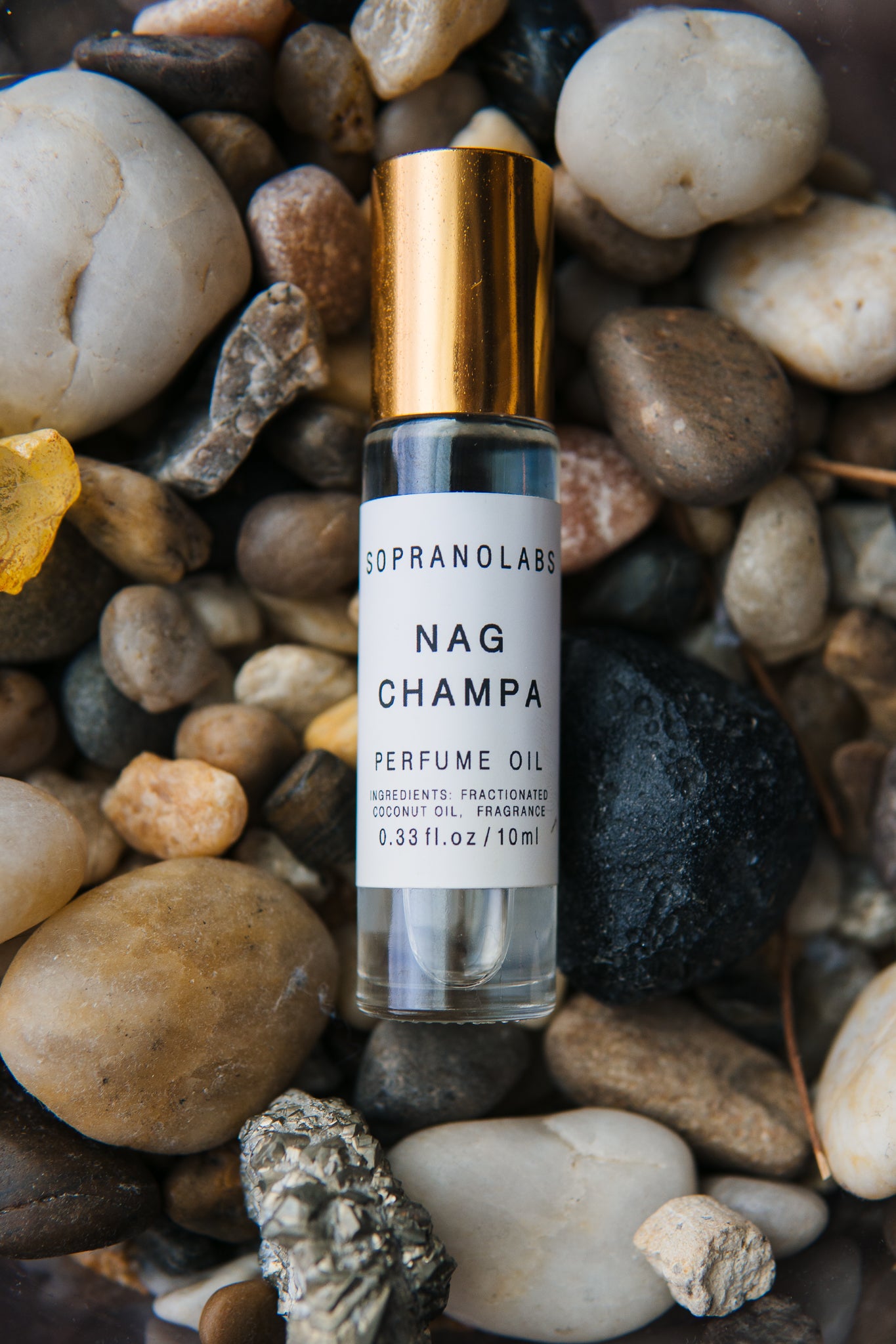 NAG CHAMPA Pure Perfume Oil. made with Natural ingredients, Vegan, Coconut Oil Luxury Roll-On Perfume. Alcohol Free. Travel Size 1/3 oz (10 ml). A warm blend of frangipani, patchouli, sandalwood, citrus, and lavender. Main accords: patchouli, balsamic, woody, white floral, warm spicy. Unisex Fragrance. It’s hand-blended and hand-poured.